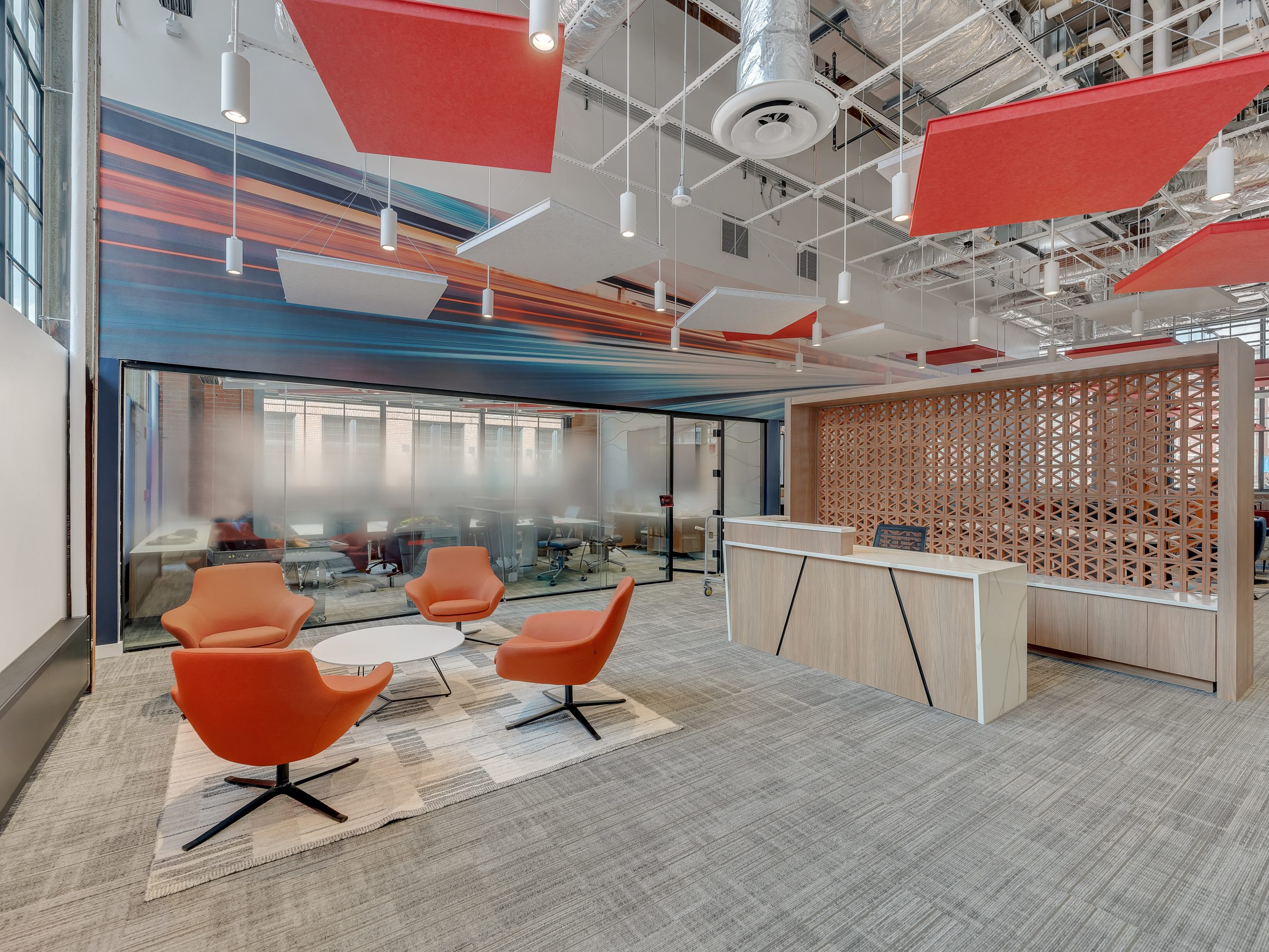 That’s why we at Strahm also offer acoustic treatment when renovating a commercial space. We work with a broad range of materials, including mineral fiber tiles, perforated metal panels, fabric-wrapped absorbers, and wood wool boards. And yes, everything is tailored exactly to your vision and brand, so the workplace tells the exact story you want it to tell when clients or workers walk in.